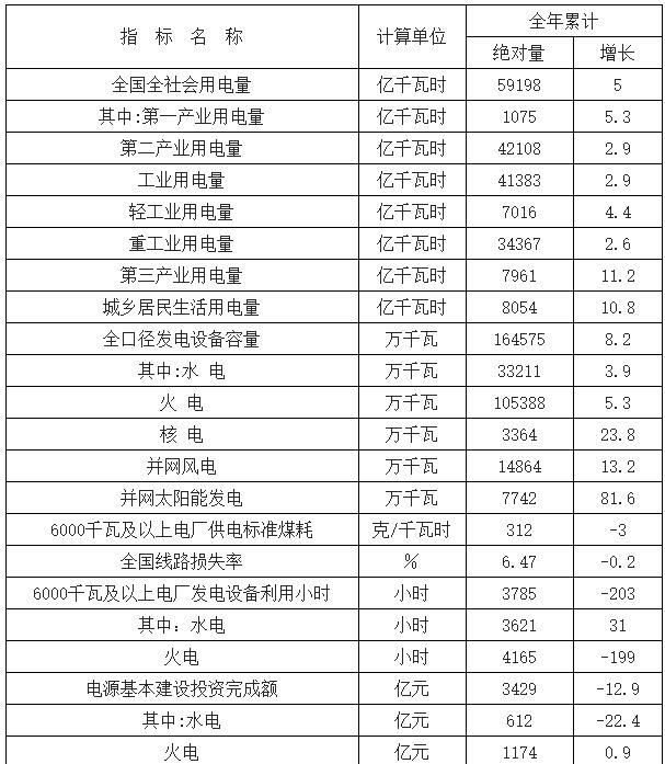 2017年中國(guó)電力運(yùn)行現(xiàn)狀分析數(shù)據(jù)顯示,2016年,全社會(huì)用電量59198億千瓦時(shí),同比增長(zhǎng)5.0%。分產(chǎn)業(yè)看,第一產(chǎn)業(yè)用電量1075億千瓦時(shí),同比增長(zhǎng)5.3%;第二產(chǎn)業(yè)用電量42108億千瓦時(shí),同比增長(zhǎng)2.9%;第三產(chǎn)業(yè)用電量7961億千瓦時(shí),同比增長(zhǎng)11.2%;城鄉(xiāng)居民生活用電量8054億千瓦時(shí),同比增長(zhǎng)10.8%。