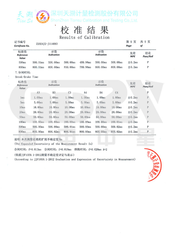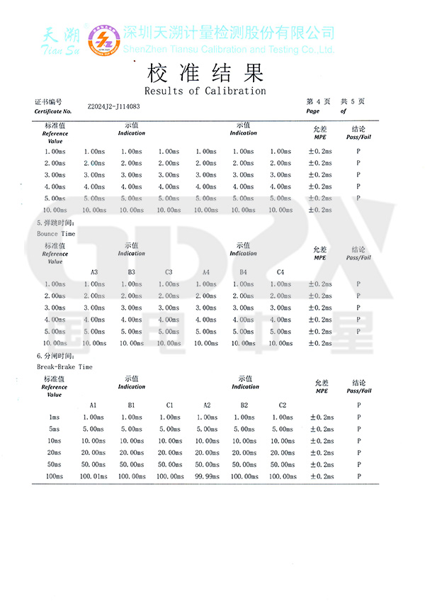 ⑷、可測斷口合、分閘時間、三相不同期、彈跳時間及次數