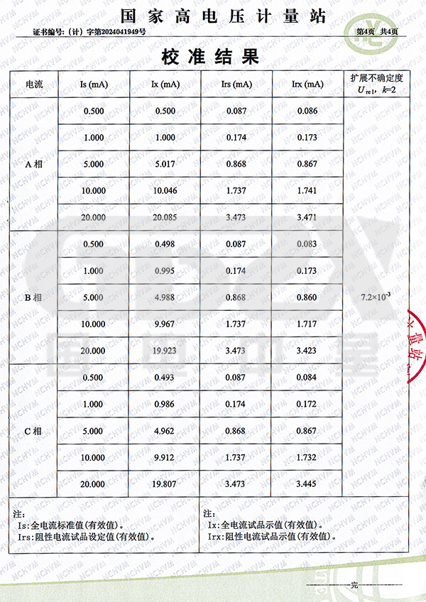 3)泄漏電流阻性分量峰值:正峰值Ir+